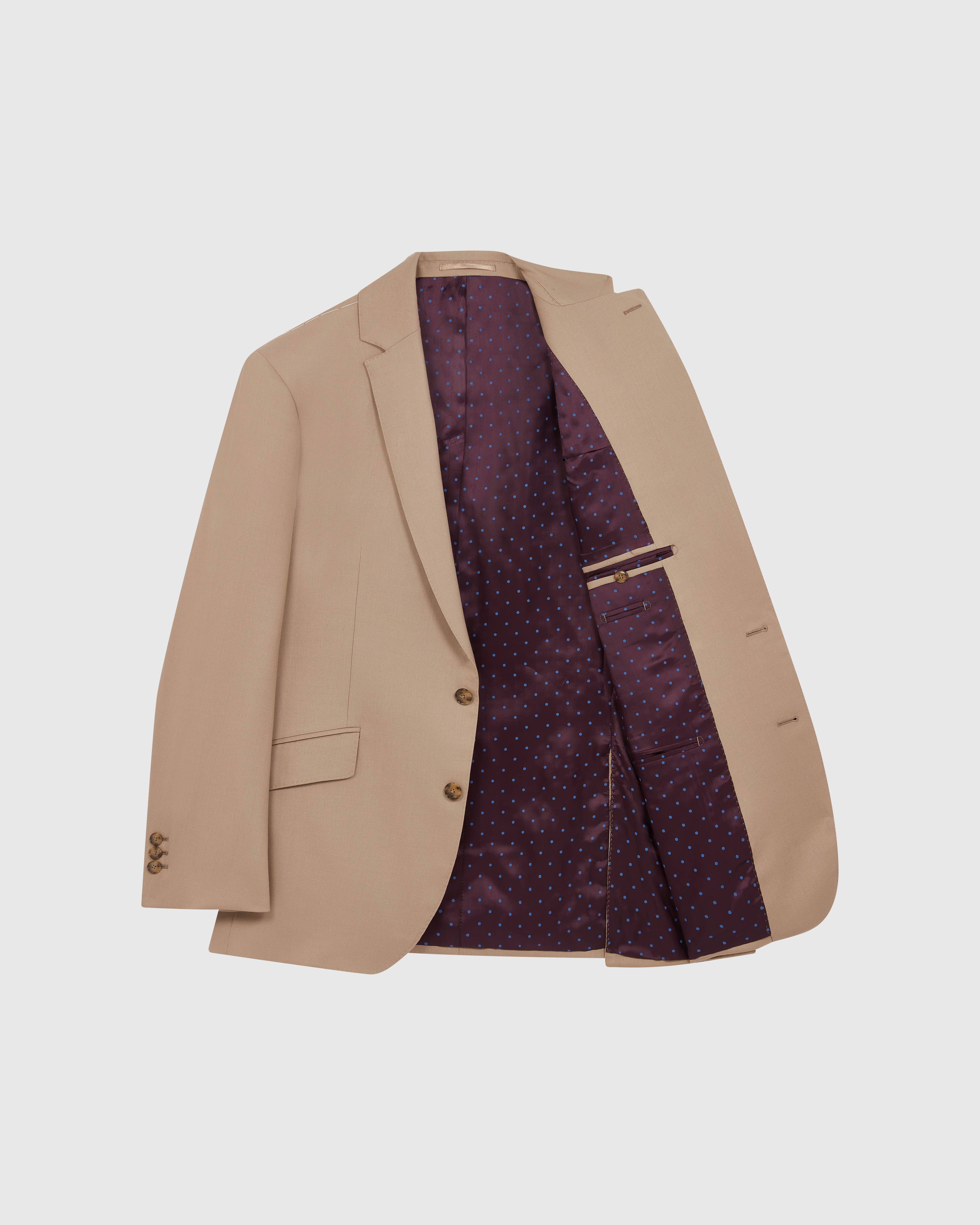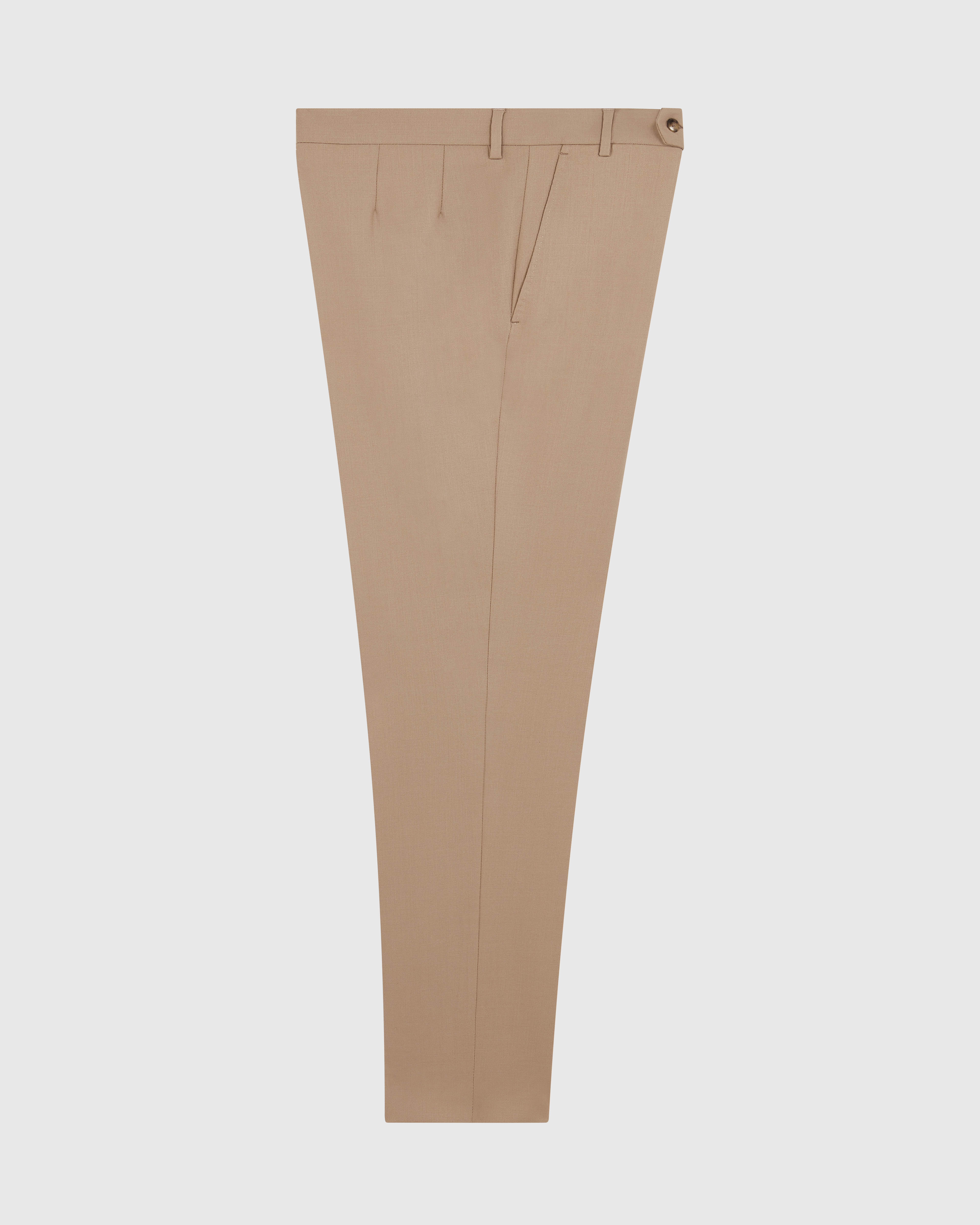 - This soft merino wool plain weave from Italian mill Zegna delivers exceptional comfort and natural breathability. The pale khaki tone pairs well with light blue shirts, ivory ties, or open collars for a more relaxed look.