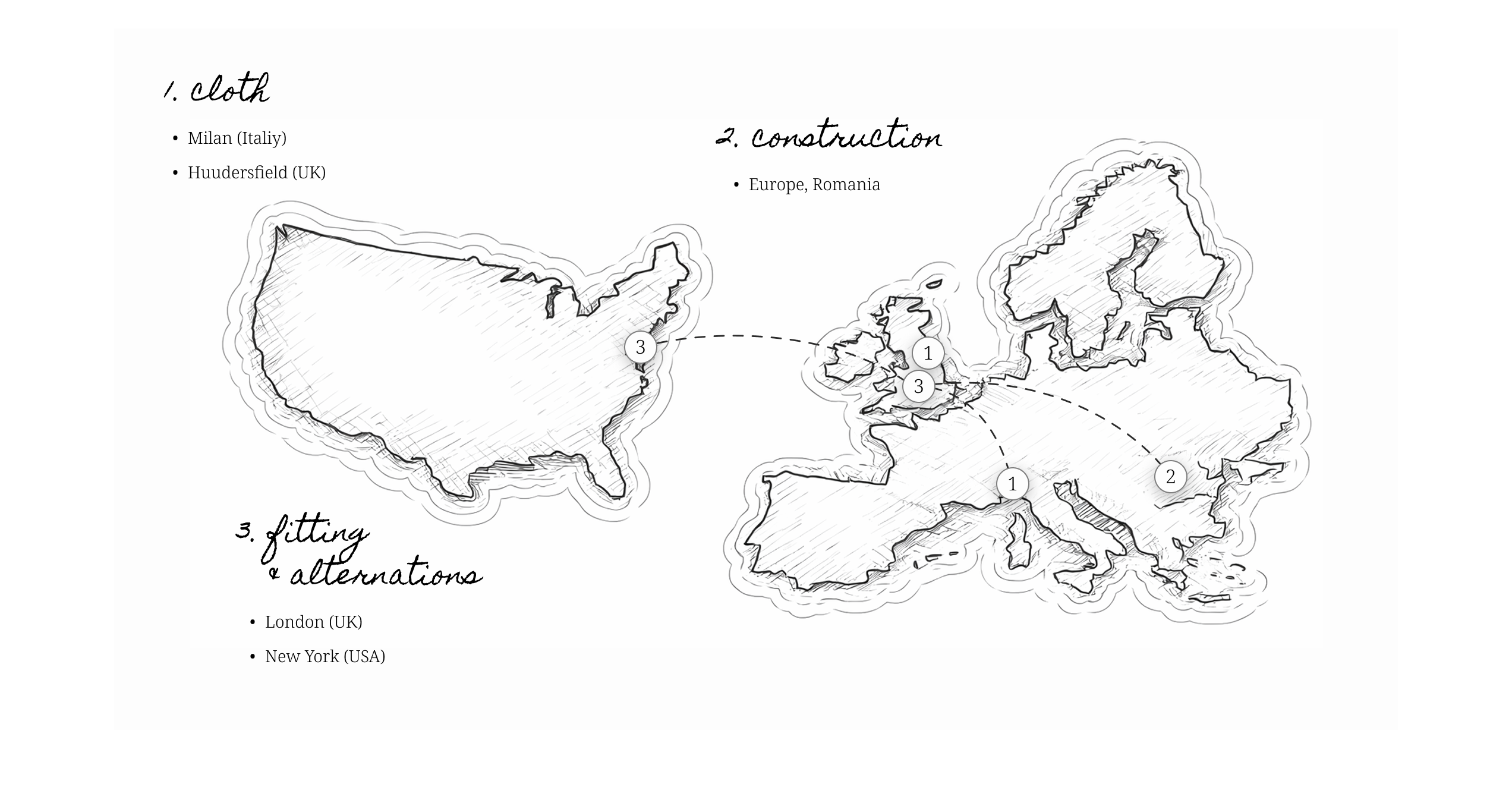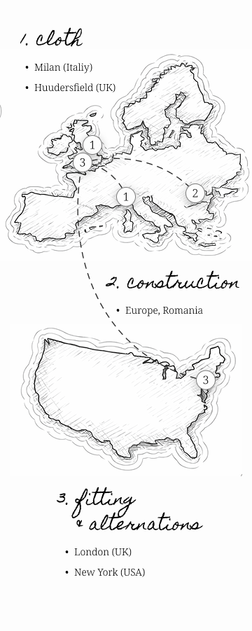 - Fabrics sourced directly from English and Italian mills